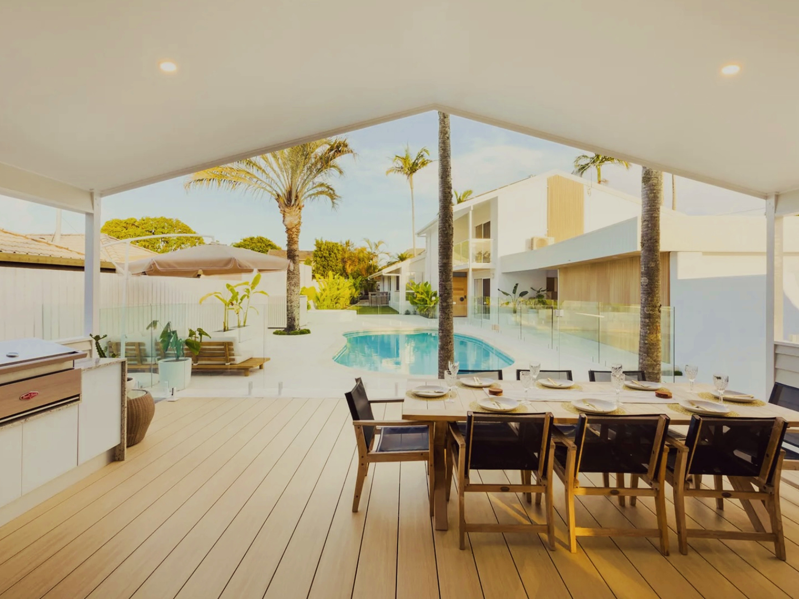 Families will love the outdoor spaces: a sparkling pool for endless swims, a playground to keep the little ones busy, a fire pit for roasting marshmallows, and multiple entertaining decks perfect for shared meals in the fresh coastal air. For the adults, unwind in the sauna while the kids play, or enjoy the privacy of the pool house as a teen retreat or for grandparents travelling with you. Inside the main home, there’s plenty of room for everyone with multiple bedrooms and bathrooms, plus bright open living areas. The modern kitchen makes family meals a breeze, while the pool house offers its own kitchen and living space for extra flexibility.